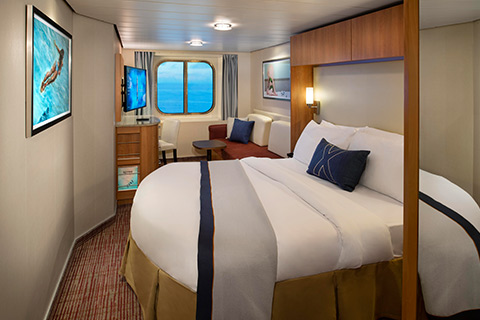 Ocean View staterooms, the ideal place to unwind at sea. These perfectly indulgent spaces come furnished with Celebrity's eXhale(R) bedding featuring the luxury king sized* mattress and everything else a modern traveler needs. Cabin Size: 176 sq ft Stateroom images and features are samples only. Actual furniture, fixtures, colors and configurations may vay